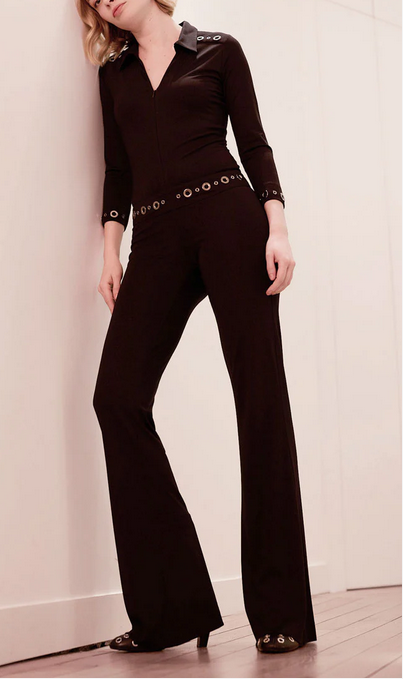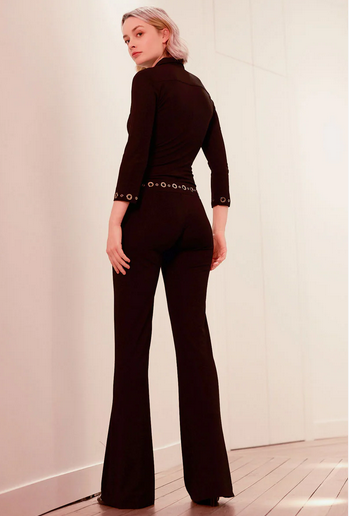 Combi pant DAIKI Nathalie CHAIZE noire , mélange de viscose stretch , oeillets argentés sur la taille , les épaules et les poignets